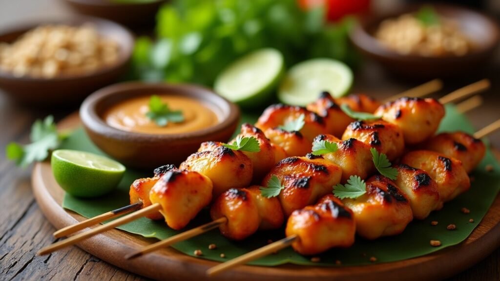 Few dishes capture the essence of Southeast Asian street food quite like Chicken Satay — tender strips of marinated chicken grilled to smoky perfection and served with a rich, creamy peanut sauce. It’s a dish that balances sweet, savory, spicy, and nutty flavors in every bite.