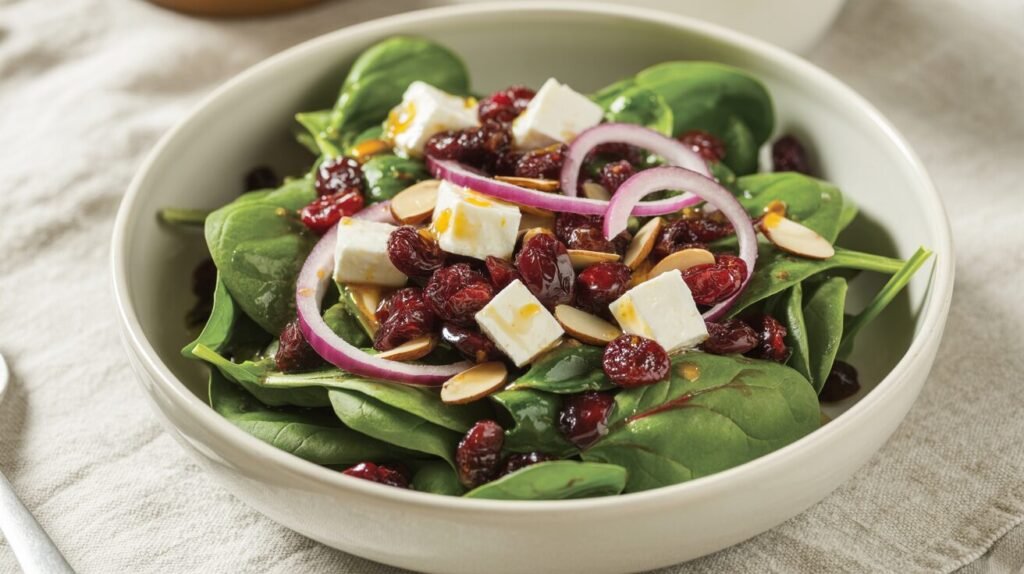 This Cranberry Spinach Salad is the definition of fresh simplicity — a colorful, nutrient-packed dish that brightens any table. It’s the kind of salad that’s so good, even those who claim not to love greens will go back for seconds.