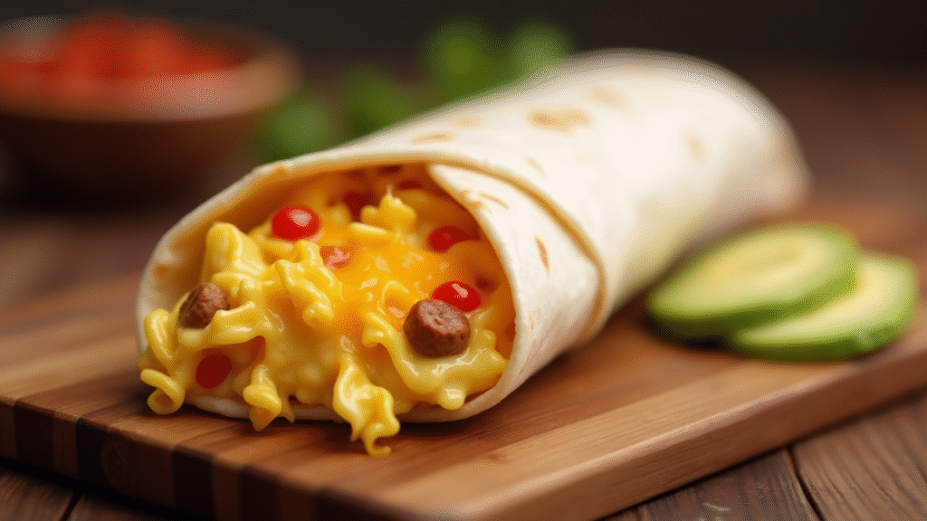 To make the burrito more filling and flavorful, consider adding some veggies or meat. Diced bell peppers, onions, or sautéed mushrooms can add a fresh crunch, while cooked sausage or bacon provides extra protein and flavor.