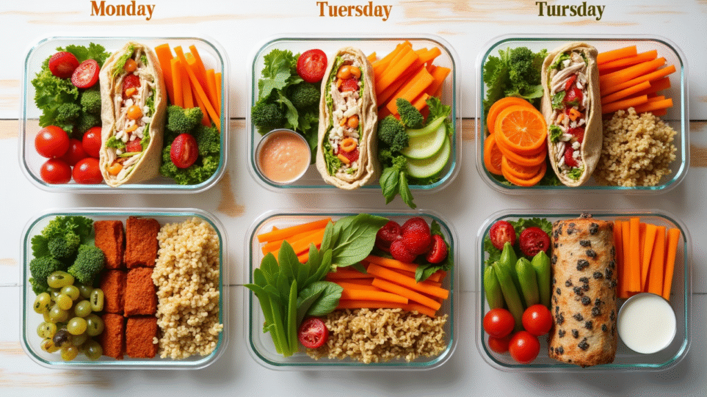 - Grains: Quinoa, brown rice, whole wheat wraps, and whole-grain bread—these ingredients hold up well and add substance to the meal.