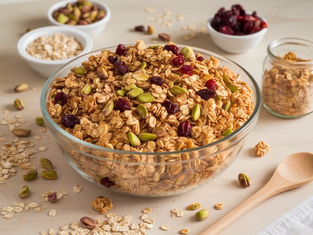 There’s something deeply satisfying about the sound of homemade granola hitting the bottom of your breakfast bowl, followed by the crunch of perfectly toasted oats mixed with buttery pistachios and the sweet-tart burst of dried cranberries. This pistachio and cranberry granola recipe delivers that perfect balance of textures and flavors while filling your kitchen with the most incredible aroma that will have everyone asking when breakfast is ready.